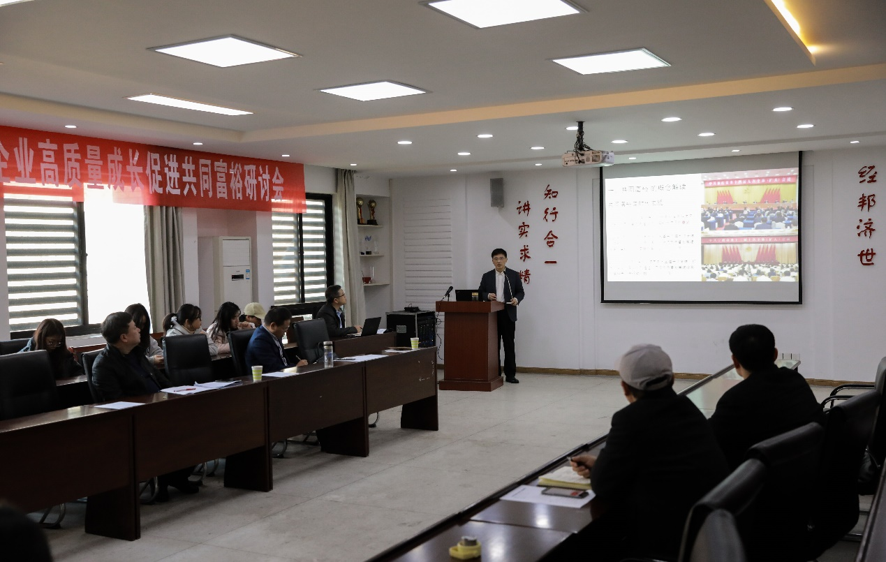 学术活动以“聚焦共同富裕助力高质量发展关注小企业成长”为主旨,紧紧抓住如何推进小企业高质量发展促进共同富裕这一核心问题,钟昌标教授以《推进共同富裕的目标与困难》为主题,通过中外经济数据对比、国内不同省份数据对比,诠释了实现共同富裕的一系列目标和困难,并就税收、分配、社保等体制改革的难点给出政策建议;李磊明高级编辑以《扎实推动共同富裕》为主题介绍了宁波中小微企业发展现状,结合中央有关共同富裕的文件精神,从制度设计视角,对当前过度资本化、产业资本均衡、产业链有序规范等问题进行了深入的探讨;方建新教授以《宁波民企促进共同富裕》为主题阐述了共同富裕概念和内涵,并对小企业高质量发展如何助力共同富裕提出诸多设想,提出了包括打造十大标志性产业链、数字产业化、产业数字化等有针对性的对策和建议。郭跃教授以《企业家受高等教育水平与企业运营成功率间的关系研究》为题,用数理分析方法研究了高等教育水平与企业创新创业成功率之间的关联关系。