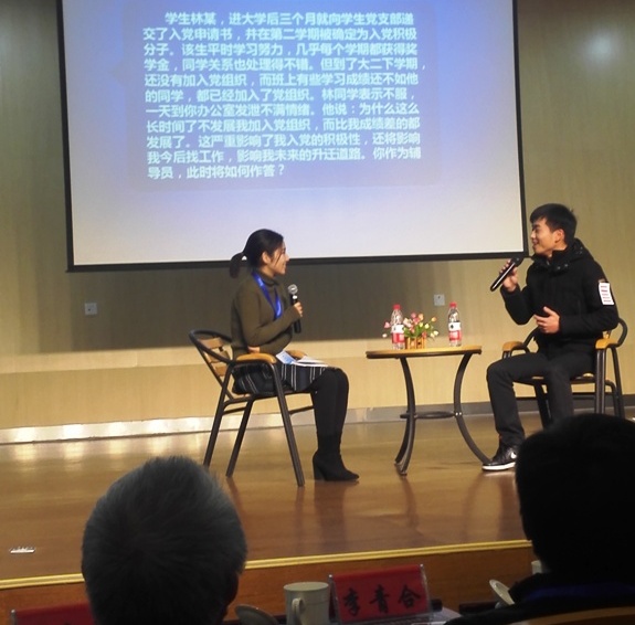 面对学生中出现的考试作弊处理问题,黄翔翔应答自如,陈述条理清晰。在与学生互动环节中,她耐心细致,仔细解答学生困惑,为学生理清入党的努力方向,和学生共同面对问题,得到学生认可。
