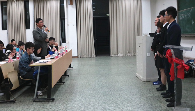 校园新闻网讯 4月25日晚上,超级演说家决赛在教四110结束。人文学院翟新格、陈小亮,校广播台郎浩天、周金晶担任此次大赛的评委,分团委书记尹滔及主席团成员出席,各班代表积极参与。