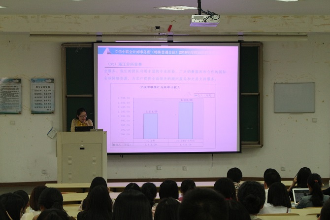 宣讲会上,李蕾蕾热情洋溢、细致耐心地介绍事务所的发展历程、组织构架和内部管理情况,以及事务所具有的职业资格并从事相关业务的服务功能、专业实力等相关信息。作为宁波行业领头人之一的立信中联事务所,坚持“独立、客观、公正”的宗旨,始终把学习能力作为招聘实习生的重要条件,引得学生一阵赞同之声。而在人生阅历和工作经验方面,李蕾蕾认为,当今大学生的首要任务是全面认清自己,为自己做好切合实际的职业规划。解疑答惑阶段,学生提问积极踊跃,向主讲人提出了许多诸如专业限制、跨地域招聘、海外派驻的问题。李蕾蕾耐心回答后,也对年度招聘计划、招聘内容、联系方式做出详细的解读。据了解,本次事务所拟招聘审计及会计、财务管理等相关专业本科以上应届毕业生20名和工程相关专业本科以上应届毕业生5名。 (黄雅婷/文,郑晶晶/审)