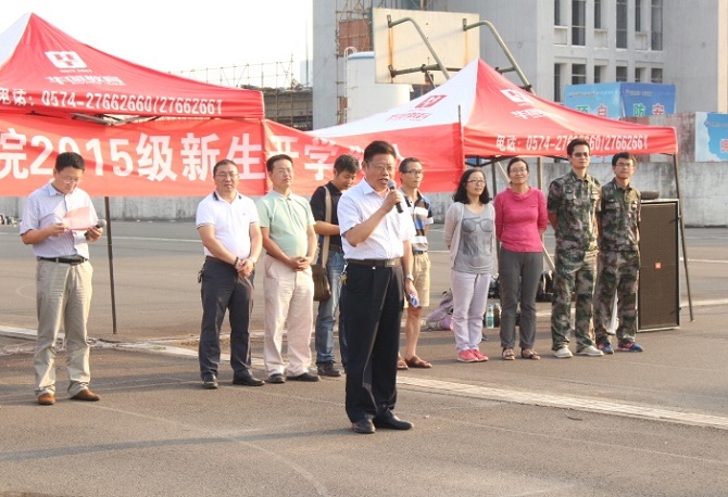 院长朱占峰满怀热情致辞。他为同学们分析了宁波城市口号“书藏古今,港通天下”的内涵,简要介绍宁波城市概况。他指出学院各专业与区域经济和社会发展吻合度高,学生就业前景非常好。他对新生提出三点希望:第一、要加快转变。理解高等教育与基础教育的区别,做到自强、自立,提升自我价值。第二、要奋发有为。将校训“知行合一”和学院精神“讲实求精”相统一。践行院训“经邦济世,管事理人”和学院精神“梅香苦寒,迎战未来”。第三、要勇攀高峰。互联网+、O2O、APP、工业4.0等创新概念同为青年学子的机遇,只有抓住机遇、勇攀高峰,才能放飞人生的梦想。最后,朱锡明总结发言,希望新生努力打好基础,学有所成,实现自我。