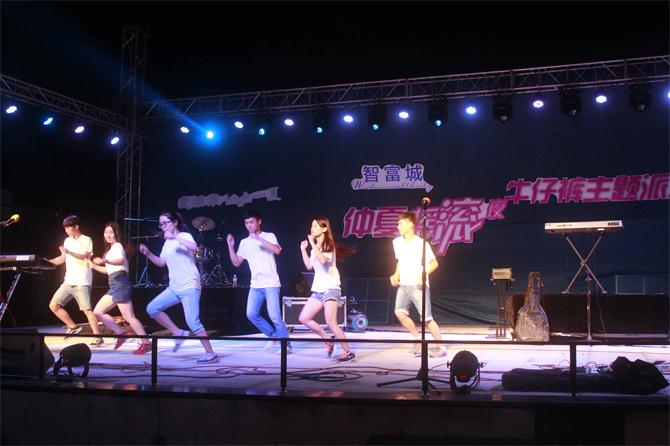 校园新闻网讯 7月18日晚,生存训练营队员受到“仲夏摇滚夜牛仔裤主题派对”在嘉兴智富城进行演出的“仲夏摇滚夜牛仔裤主题派对”的邀请,为主题派对表演开场舞《青春修炼手册》。