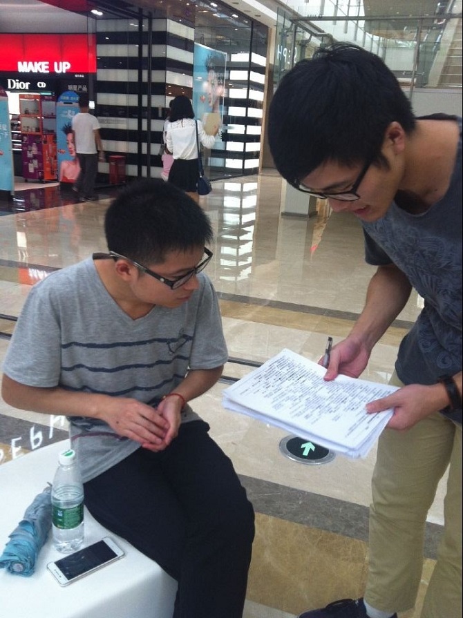 经负责人的安排,该组人员前往鄞州万达广场对宁波市的城市交通拥堵状况进行民意调查。活动期间,该组成员顶着炎炎的烈日四处奔走,在拥挤的人群中完成问卷调查。成员表示,在此前他们已经在各大小区展开了调查,但频频碰壁、屡遭拒绝,大家的情绪都有点低落。尽管如此,小组成员们还是在万达广场的人群中穿梭着,为此次调查不懈努力。