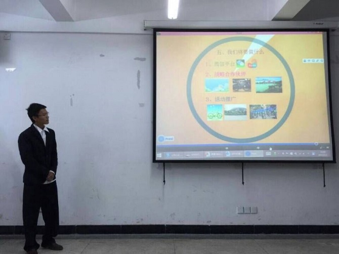 答辩会现场,周书记对东田进出口有限公司、尤其是何总对于学生创业项目的支持表示由衷的感谢,非常希望何总能够经常回母校与同学们交流创业想法,也希望何总能够担任同学们的创业导师。整个答辩会期间,现场气氛非常热烈,已经受到资助的项目汇报了一年以来项目进展情况及未来项目的发展规划。热情最高的属于新近创业的同学,他们向何总详细介绍了自己创业项目的特色及未来的发展前景。其中,绿色骑迹、宁波青木艺术工作室、“路游”旅行工作室等创业项目受到何总的赞扬,何总表示将继续关注并支持经管学子的创业项目。