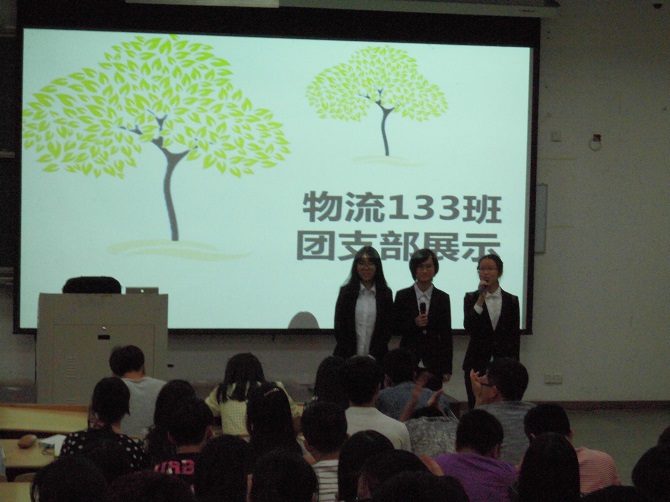 答辩会现场,各团支部进行PPT展示,答辩成绩占整个评比环节的40%,答辩中要求支部代表发言声音洪亮口号有力。各团支部主要从组织建设、班级学风建设、基础文明建设、德育建设、团支部和个人荣誉、团日及班级活动、考证科创情况等方面对过去一年取得的成绩进行展示,结尾时还伴有铿锵有力的口号,显现了一个团支部的凝聚力和集体荣誉感,其中物流133班表现非凡,配上柔美的背景音乐和活力的演说,引起场下经久不息的掌声,以最高答辩成绩40分居首。经过激烈的角逐,物流133班、会计122、物流131班以169.6分,160分,131.92分名列前三位。