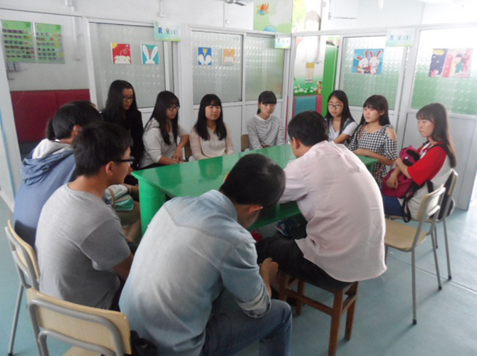 志愿者们首先来到联丰北区的“满天星”活动区,负责人刘老师对志愿者们进行了简单的培训,介绍了机构的组成、活动内容与部分自闭症患儿的情况。在刘老师的指导下,志愿者们帮助“满天星”福利机构的儿童在网上销售患儿们雕刻的花盆及移栽的多肉植物,争取能发动更多的社会力量帮助这些孩子。在联南社区,志愿者参观了康复中心的小花园与患儿们制作的雕刻作品,并尝试和孩子们进行沟通和交流,虽然交流过程不是很顺利,志愿者们都以热心、耐心和关心去加深和孩子们的相互了解,建立感情纽带。