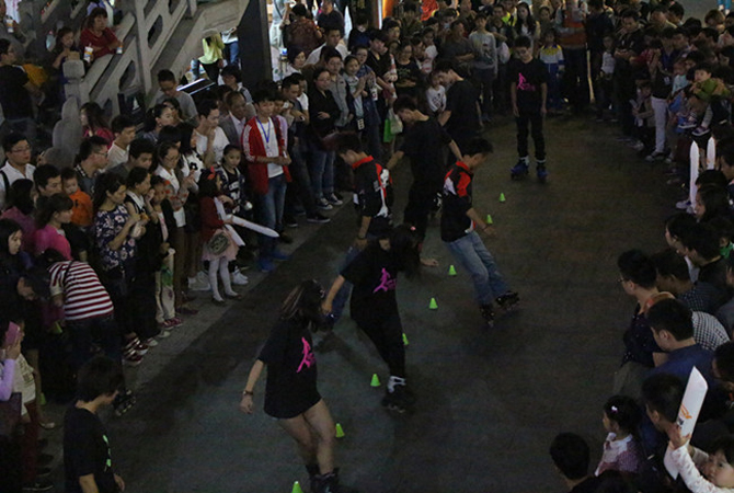 活动开始前,工作人员向舞台周围观众赠送充气棒等小道具来活跃舞台气氛,随后,一首《征服》拉开了表演的序幕。幽默的话剧、美妙的歌声、古色古香的汉服表演.....精彩纷呈的节目让路过的市民驻足观看。在精彩的滑轮比赛中,全场爆发出的强烈欢呼声更是把气氛推到了高潮。在最后的互动活动中,结合宁波的本土文化,介绍了宁波的风土人情和神话传说,展现了宁波的文化底蕴。 (严善娟文 许瑶佳摄 周含秀审)