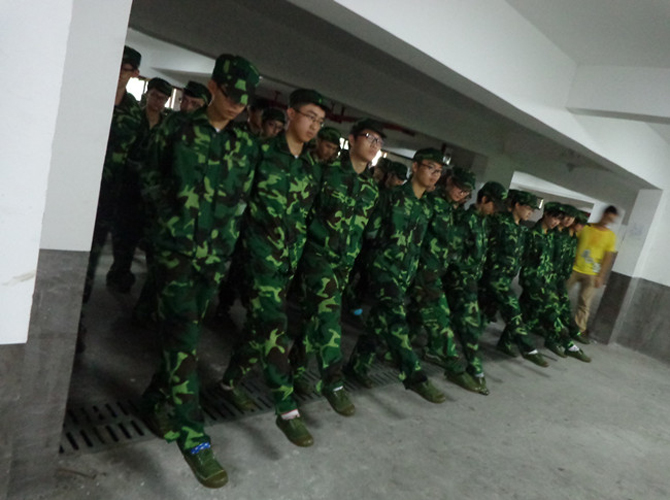 校园新闻网讯 近日,台风的突然造访给14级新生的军训造成了极大的影响,然而经管学子们并没有倦怠,或就此退却,而是秉持着“梅香苦寒,迎战未来”的学院精神,转战寝室楼的地下室进行了军训。