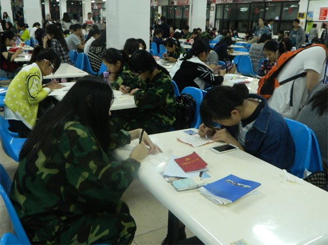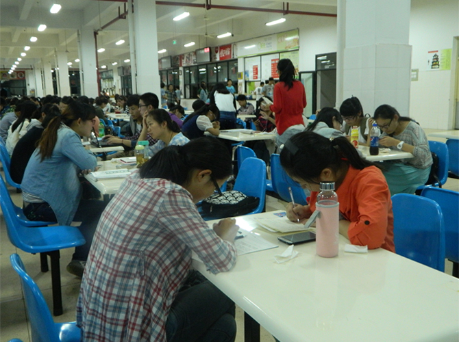 在这样一个下着大雨的晚上,经管的新生们没有呆在寝室里无聊地打发时间,而是来到了大食堂,在学习和交流中共度时光,增进了同学之间的感情,也加强了新生对大学生活的归属感。 (周含秀文 徐阳阳审)