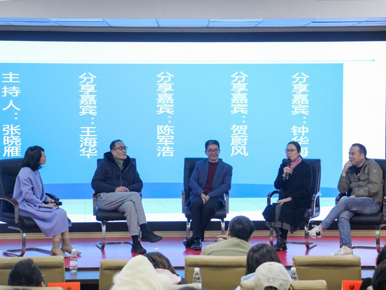 主旨交流环节,就大学故事、社会成长经历及创业经验等内容,校友们同大家进行了深入的交流。校友们回忆了校园生活的美好时光,并讲述了自己在职场打拼的历程,分享了如何在工作中克服困难、把握机会的经验,通过生动的语言和具体的案例,让在场的同学们感受到了他们对母校的深厚情感和对职业发展的独特见解。访谈中穿插着提问环节,同学们询问了许多涉及行业趋势、发展现状、创业经验分享等职业规划类问题,得到了校友们的热情解答和宝贵意见。校友们鼓励同学们保持积极的心态,要通过不断提升综合素质和专业技能,应对日益激烈的就业竞争环境。