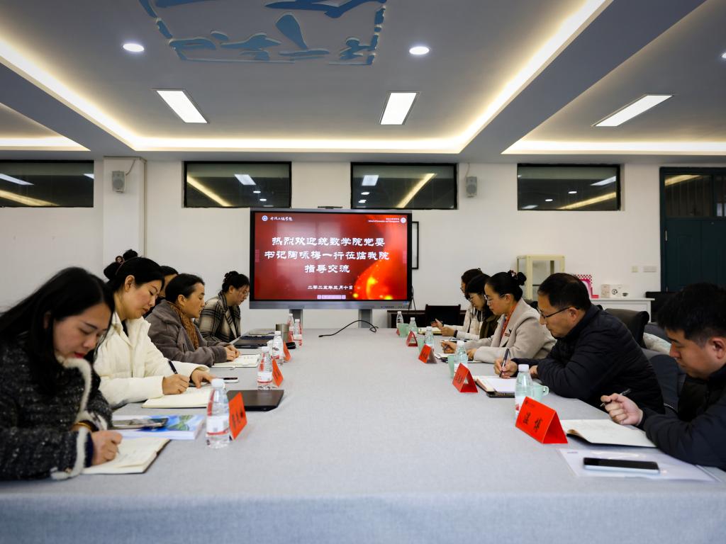 2025年3月10日,统数学院党委书记陶咏梅、副院长王延新、系主任林丛、教授温博,英国上市公司365党委书记楼茵、副院长耿师导、研究生办公室主任侯丽,以及统数学院研究生辅导员王紫菲、英国上市公司365教学秘书梁先娥、研究生辅导员李奕蓉共同参会,就硕士点建设管理与研究生招生复试等工作展开调研交流。