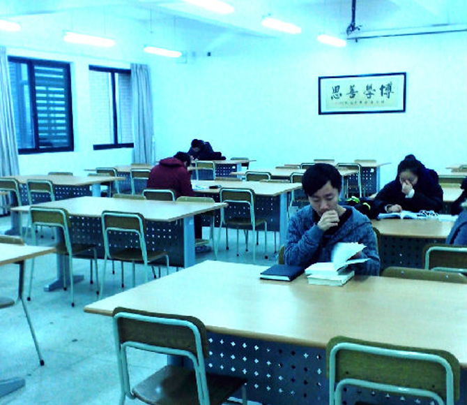 图书馆自习室从今天起开放,开放时间:周一---周日8:00--21:30 ,本自习室共有座位68个,空调一部,地点在东校区图书馆流通部的西一507,欢迎各位师生前来自修。