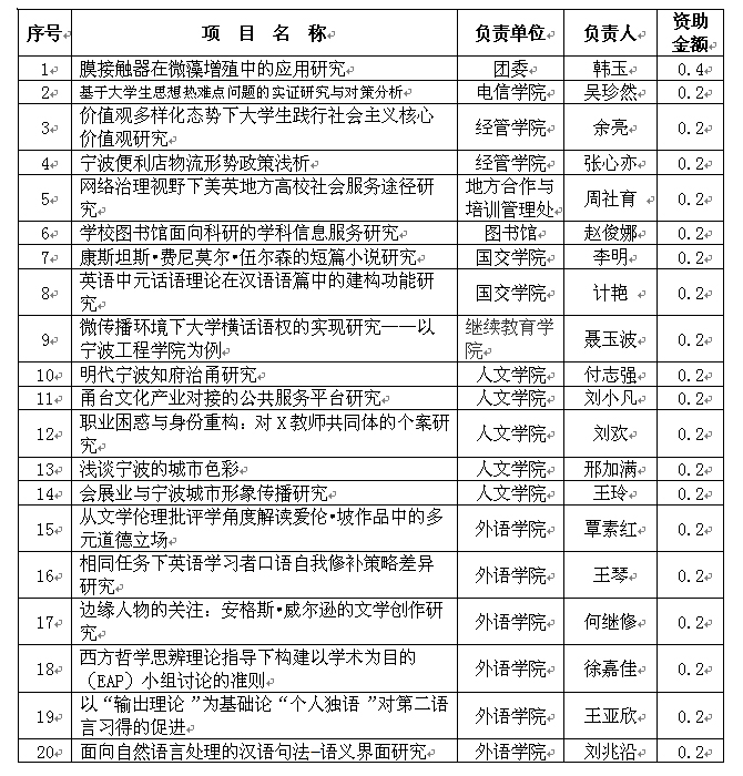 2014年度校级科研项目及学术专著出版资助的评审已经结束。经过学校科技处初审、校学术委员会评审、拟对以下20项申报项目进行立项资助,3部学术专著进行出版资助,现公示如下: