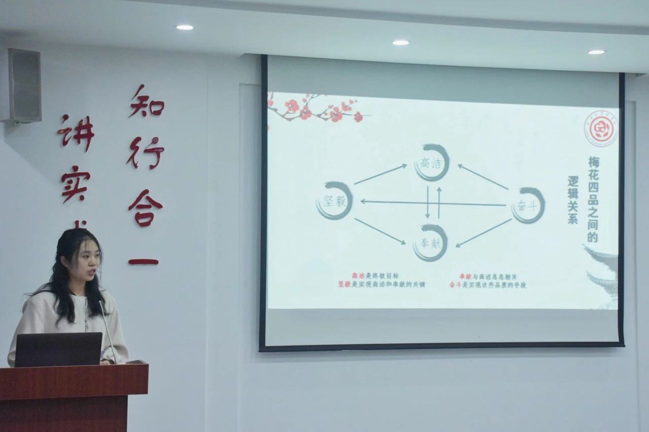 本次讨论共分七个小组,经过前期认真准备,各小组从不同的角度出发,依次讨论并分析“梅花四品”的内涵,表达各自独到的见解。各小组主要从三方面展开大讨论:一是“梅花四品”间的内部逻辑关系。二是梅花四品与各专业间的联系。三是梅花具象化演变出的廉洁精神。