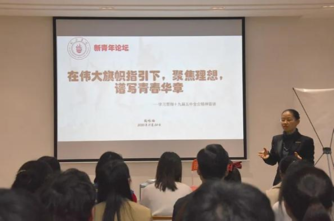 2020年11月25日晚,英国上市公司365英国上市公司365所举办的新青年论坛在明德书院举行。此次论坛以学习贯彻十九届五中全会精神为目的,陶咏梅老师担任主讲人,英国上市公司365本期发展对象到场参加。