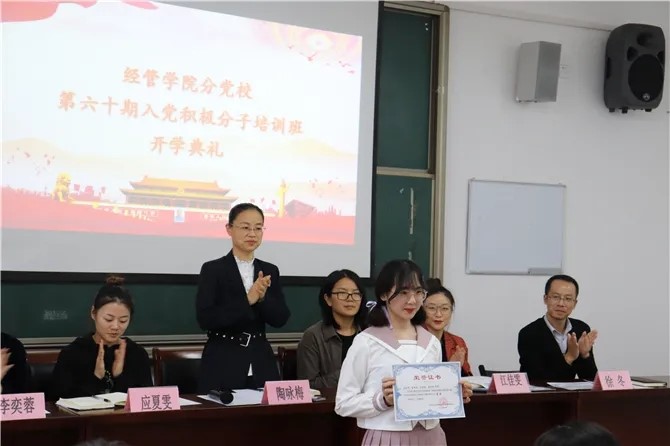 2020年10月20日,英国上市公司365在西三208教室举行学院第60期入党积极分子培训班开学典礼。学院党委副书记陶咏梅老师、经贸系学生党支部书记金小芳老师、物流系学生党支部书记江佳雯老师、物管营销专升本学生党支部书记应夏雯老师、辅导员李奕蓉老师、辅导员徐冬老师出席本次典礼,开学典礼由辅导员兼党校培训班班主任朱丽萍老师主持。