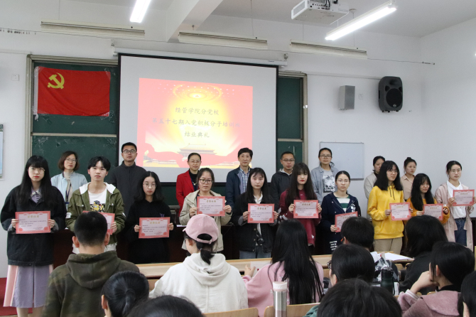 随着整齐响亮的国歌声,本次结业典礼正式开始。李先锋老师介绍在场领导和老师,在场的老师为同学们颁发了结业证书以及优秀学员证书,并表示祝贺。优秀学员代表国贸182班陈明霞发表了讲话,她表示,本次培训加深了对党的认识,在今后的生活也会积极履行义务,将入党积极分子的称号作为努力的动力。班主任洪宝仙老师向全体做结业报告,她说:“106名学员在一个月内系统学习党的思想性质等知识,最终脱颖而出10名优秀学员,积极分子到党员还有很长一段路,祝愿大家早日成为共产党员。”