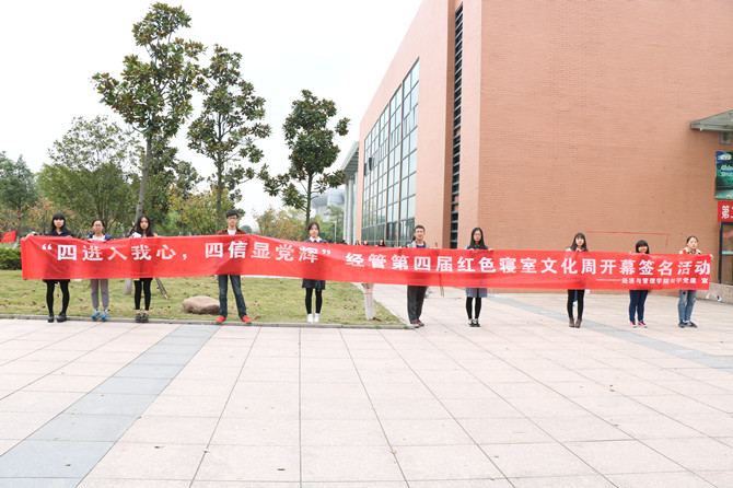 本次红色寝室文化周以“四进入我心,四信显党辉”为主题开展,以推动党建活动进寝室的工作为背景。参加此次签名活动的有学院的辅导员老师、支部党员、预备党员、以及经管的学生们。活动经由相关负责人精心策划与筹备,现场气氛热烈非常,同学们积极参与。而党员们亦能通过红色寝室文化周的活动内容将党员的优良品质、党员的积极性传播给众多学子。除此之外,精彩的内容还丰富了经管学生的校园生活。
