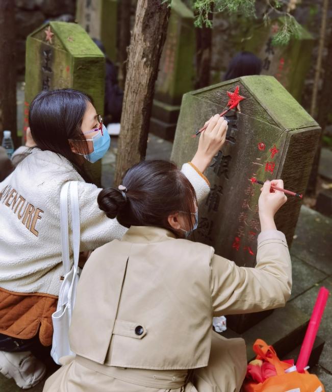 除了上述活动外,经贸系学生党支部的党员还主动承担起为烈士陵园已经掉色的墓碑描红和打扫200多阶台阶的志愿服务工作。党员同学们表示,能为伟大的革命烈士做点力所能及的事,感到非常骄傲。