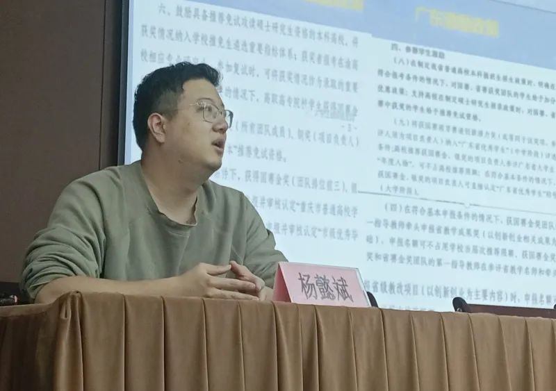 最后,杨老师通过分析竞赛类的含金量与研究生升学要求,肯定了“互联网+”与创新创业大赛的对在座的重大意义。在会议尾声,他激励各位“青马班”的学子积备赛,为自己争得荣誉,为学校争得荣光。