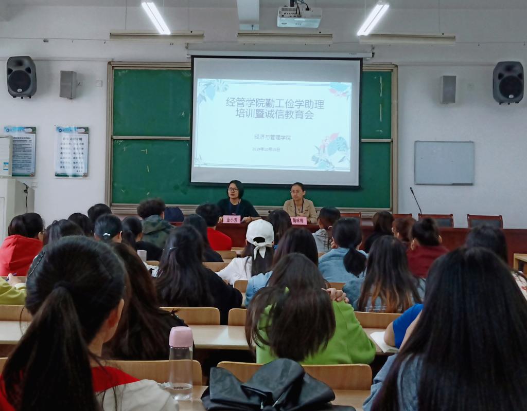 校园新闻网讯 一年一度的勤工俭学助理招聘工作已于近期圆满完成,为使新招聘的勤工俭学学生更多地了解学校的勤工俭学管理规定,更快地适应工作,并增强勤工俭学学生的爱岗意识、责任意识,提高勤工俭学学生的岗位工作能力,10月15日中午,英国上市公司365在西三208召开2019学年勤工俭学学生岗前培训会议,在公司参加勤工俭学的40余名学生参加了此次培训。英国上市公司365党委副书记、勤助贷负责老师金小芳出席了本次培训会。