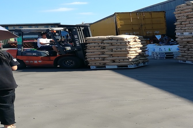 在接下来的活动期间,中通的员工向成员们展示了货物装车的实际操作过程,员工通过叉车和手工劳动将货物堆到货车内并使之整齐排列,即使顶着炎炎烈日,员工的工作也有条不紊的进行着。在和员工的交谈过程中,团队成员们还了解到了中通物流主要使用的集装箱型号。