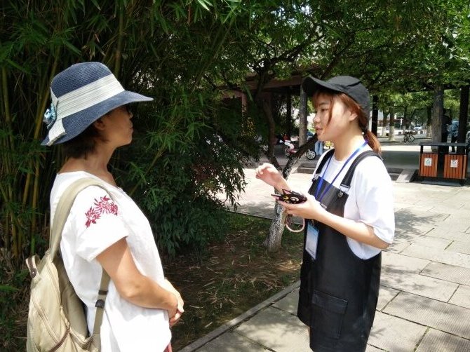 团队成员共分为三个小组,分头行动去到鼓楼、天一广场、城隍庙等景点进行了访问调查。该组各成员与景点负责人认真交谈,其负责人也非常有耐心,一一耐心地进行解答,了解了被调查的景点旅游高峰期时段、游客来源地、旅游专线等情况,为这次暑期社会实践活动提供了重要的数据来源。该组成员还对宁波市部分景点的旅客进行了访问调查。尽管炎炎夏日,但仍然挡不住他们调查的热情。他们各自分工,对不同年龄阶段的旅客进行一对一的访问,被访问的旅客也耐心的回答完了他们所有的问题,让他们了解到了旅客选择游玩地点的原因、出行的方式、是否组团等信息。