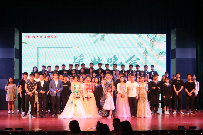 晚会在水鼓队精彩的表演中拉开了序幕,党委书记程刚以平易真诚的语言为毕业生送上祝福,希望大家要科学规划好自己的人生,方向永远比速度重要;要努力,要坚强,在以后的漫漫长路中,要相信天道酬勤,总有一天你的付出将会有所收获;要学会感恩,多一些感恩之心,生活才会更和谐、更美丽、更幸福。学院领导为省校级优秀毕业生、优秀论文奖学金、考研奖学金获得者颁奖。雨浥话剧协会以舞台剧《二十三岁未成年》、歌曲《青春修炼手册》分别展现了大学生活的点点滴滴,将全场观众带入青春的美好记忆中。朗诵《青葱岁月》表现了学生对学校的拳拳爱意和不舍之情,令人动容。相声《长大》以诙谐的语言调动现场情绪,表演者妙语连珠,观众笑声不断,掌声如雷。微信互动、抽奖也是本次晚会的一大亮点,观众的积极参与让现场气氛高涨,欢笑连连。最后伴随着合唱团《梨花又开放》的动听歌声,幕布缓缓拉上,但温暖的回忆将永驻毕业生心间。