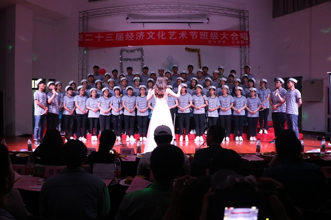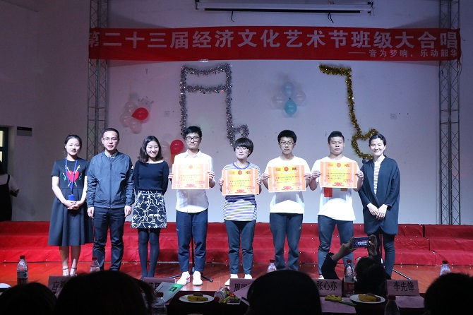 营销161、162,会计151、152在各表演环节中得到评委认可,分获大一组、大二组第一名;会计161、162,国贸161、162,会计153、154获第二名;物工151、152获第三名。班级大合唱,是学院经济文化艺术节的传统项目,将每位同学团结凝聚在一起,唱出自己内心的梦想,倡导爱班爱校爱生活的理念,因为梦想,乐动韶华。