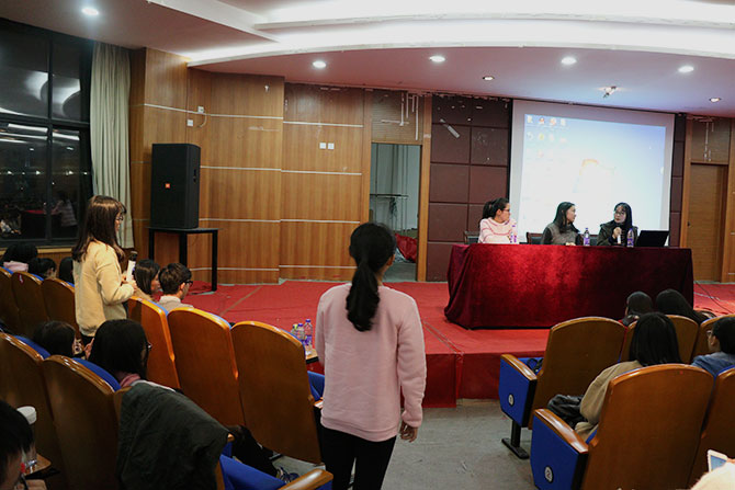 学习之余还担任经管科协主席的邱俊茏在讲台上侃侃而谈。她结合校训从“知”、“行”、“合一”三方面讲了自己的一些经历和所获得过的荣誉。拔尖的成绩,优良的德育,以及丰富的社会实践经历让大家心生敬佩;国贸131班的颜虹同样拥有着出色的成绩和突出的社会实践能力,她跟我们分享了自己做助教,党代以及当实习生时的经历,启迪着我们要时刻拥有着不放弃的精神;连续两年获得校特等奖学金,大三赴日本山梨学院交流学习一学期,如此丰富的阅历,让同学们对营销132班的郑舒婕惊叹不已,刻苦学习之外,她爱好广泛,喜欢跳舞和外语,经常参加一些舞蹈大赛和外语竞赛,并屡屡获奖。