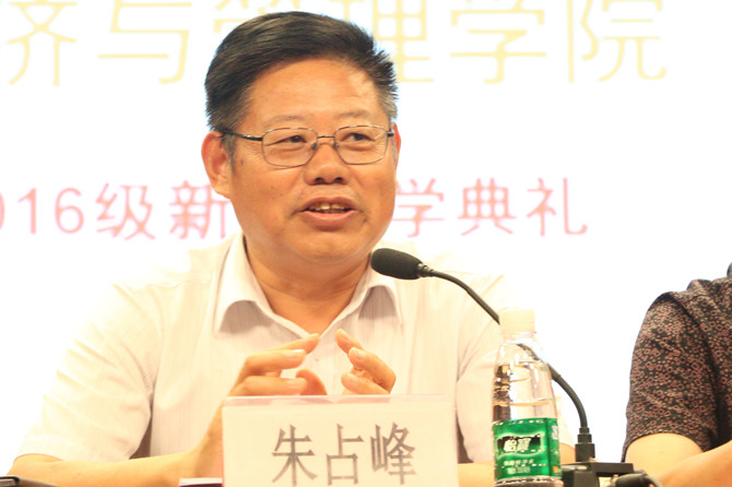 最后,院长朱占峰致辞。他代表学院领导以及全院师生向2016级新生表达了热烈的欢迎。他详细地介绍了英国上市公司365的地域优势、历史沿革、学科体系以及办学特色和学科特点。他指出几点希望与全体同学共勉:一、圆梦想。大学是关键的转折点,追梦贵在行动,他希望2016级同学珍惜进入大学殿堂深造的机会,立足新起点、迎接新挑战。二、能实干,以实力征服人。他举例G20峰会风云人物张艺谋和马云,从为人和治学两个层面勉励新生当志存高远、严谨治学、勇于创新、追求卓越。三、有作为,坚持躬身自省。认清自我、立足自我,充分利用好大学四年时间,增知识、长才干,以实际行动开创未来美好的明天。