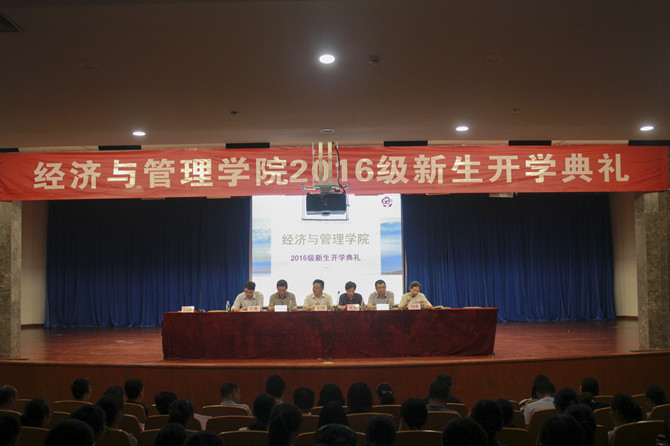 雄壮的国歌声拉开了2016级开学典礼的序幕。会计163班新生代表李琳、国贸133班老生代表张璐先后作了发言,交流了大学学习和生活的感想和经验。经管2015年毕业、考上上海交通大学研究生的营销校友余翔宇分享三个故事,勉励新生要把握大学时光、善用学习方法,积极参加实践活动,提升自己的综合能力。