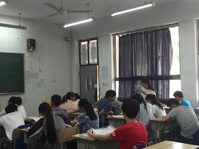 七月初,正是华维外国语准高三考试的时间,为了不影响他们下午的考试,队员们分工合作,尽量在短时间内进行最全面的宣传。在年段长的帮助下,队员们顺利的来到一个高三班级进行招生宣传工作。