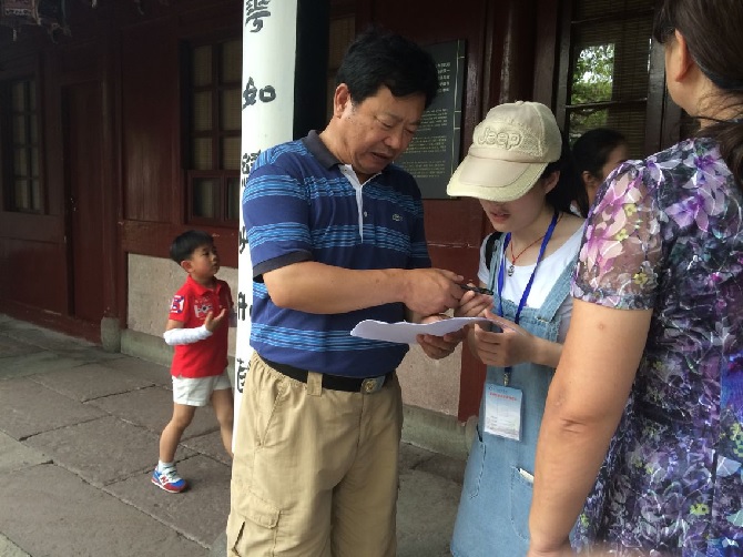 这次调研主要是通过询问游客们对传统文化的看法,走访各个具有文化气息的店家,通过问卷的形式向鼓楼的店家和游客了解宁波传统文化商业化发展程度,并对店家采访,让他们来谈谈自己对传统文化商业化发展现状的见解。在填写过程中,该团队成员不时为店家和游客讲解有疑问的地方,通过交流,他们发现游客认为宁波传统文化商业化仍然有不完善的地方,还需进一步改进。