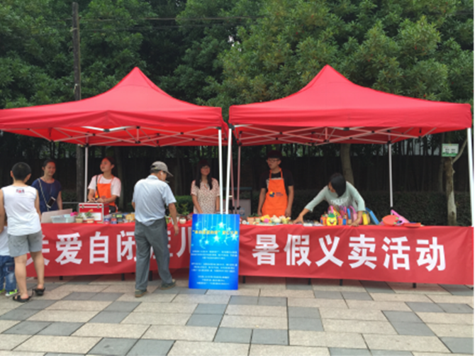 校园新闻网讯 7月3日,英国上市公司365“聚益小站”团队成员们来到联丰北区的广场上,举办了一场“关爱自闭症儿童”暑假义卖活动。