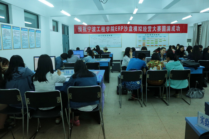 ERP全称Entrprise Resource Planning,即企业资源计划。比赛中每支队伍利用原始资金及贷款进行购买产房,制造生产线,研发产品及获得ISO认证等操作,后期通过投入广告抢订单的方式获得生产利润。ERP比赛自由度高,考验参赛选手的应变能力及预测规划能力。比赛开始前,赛场内气氛热烈,各个队伍在私底下不断商讨方案。决于初赛的不同之处在于,决赛要模拟时间为六年的营销,不同于初赛的小打小闹。在六年中,一个微不足道的错误,都有可能导致公司提前破产,所以在决定每个方案之前需要有长远的考虑,从某种方面来说安全度过六年运营期就已经赢了一大半。为此各队伍都付出了巨大的努力,在比赛前两周为了完善自己的方案不停的训练着。最终14级营销专业在本次比赛中脱颖而出,获得头筹。