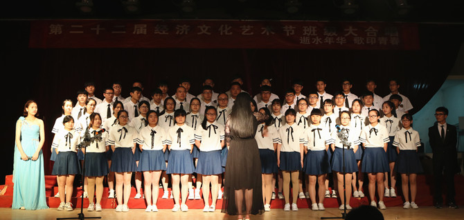 比赛在校歌声中渐渐拉开帷幕,同学们穿着整齐漂亮的服装以饱满的精神状态展现在观众面前。14级、15级参赛班级组合依次登台演唱校歌和自选歌曲。“我们的校园,在东海之滨……”当校歌声响起时,班级成员精神抖擞,神采飞扬,在比赛中尽情展现自我风采和青春活力,他们用高亢的歌声吟唱着校园风景的魅力,演绎校园生活的美好以及为学校、未来努力拼搏的坚定信念。各班展现方式各具特色,从指挥、领唱、伴舞、乐器伴奏到激情的演讲,也精心准备了各种道具,绚丽的银光棒、亲手制作的星星,绽放盛开的向日葵和郁金香、七彩的气球,生动的手语、还有具有特色的头饰。比赛精彩纷呈,高潮迭起,不断赢得场下观众的掌声和欢呼声。