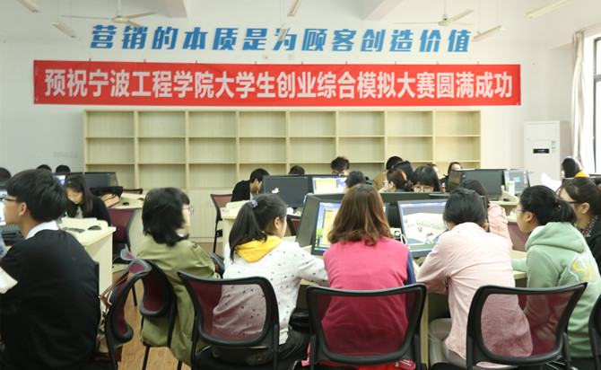 学创杯的举办旨在鼓励学生自主创业,培养其创新精神和实践能力,挖掘具有创新思维和创业潜力的优秀人才并促进高校毕业生充分就业。比赛内容主要包括四大模块:创业测评、创业计划、创业注册、创业管理。参赛选手与指导教师共同协作进行设想、规划、注册、创建、运营、管理等工作。参赛选手全身投入,针对每一个环节深思熟虑,做到最优选择,团队间的合作十分密切。在场的工作人员也积极地对选手们的问题给予解答和帮助。最后, A组的“moonlight”小组和B组的“三叶草”小组共同获得了小组第一。