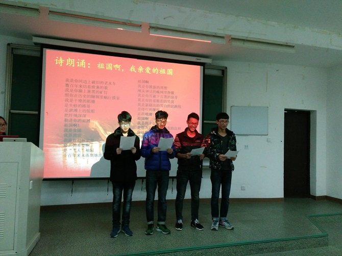大一大二各班召开主题班会、歌咏会、“一二·九”长跑、爱国知识竞赛等形式多样的团日活动。其中,国商151班和152班两个班级一同开展了“传承爱国志,践行新使命”为主题的团日活动。通过观看视频让同学们了解一二·九运动的伟大意义,并辅之以民国爱国知识问答竞赛,科普“一二·九”。由鲍楠同学深情并茂地朗诵梁启超先生的《少年说》,向同学们传达了:少年强则国强,不虚度自己的光阴,让大学生活变得充实。最后,参与活动的集体在国旗下合影,圆满完成了本次团日活动。
