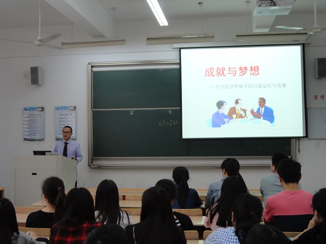 宣讲会在人保公司部门经理陈栋的简单介绍中拉开帷幕。黄立围绕“成就与梦想”的主题,结合自身大学经历和就业感受,以诙谐幽默的语言风格和饱满的热情,为在场同学分析当前社会环境下的人才要求,强调自我定位的重要性。他首先阐释他本人的生活态度:能独立,他白手起家,少年时靠炒茶赚外快;有梦想,他浙大毕业,却毅然放弃公务员的优厚待遇,选择自己想要的事业。随后,黄立基于生命轨迹的人生规划思考,总结现实世界的基本路径。他谈到,可以用来被我们奋斗的时间只有十年,当下要立足自身,认清现状,对社会变革要有理性思考。他认为,大学生在这个经济社会迅速发展的重要时期,要准确把握商机,积极分析新兴行业、新兴市场以及变化着的社会需求,从而保持自身价值观念走在时代的前沿。接近尾声,主讲人表示公司面试将定于10月15日进行。