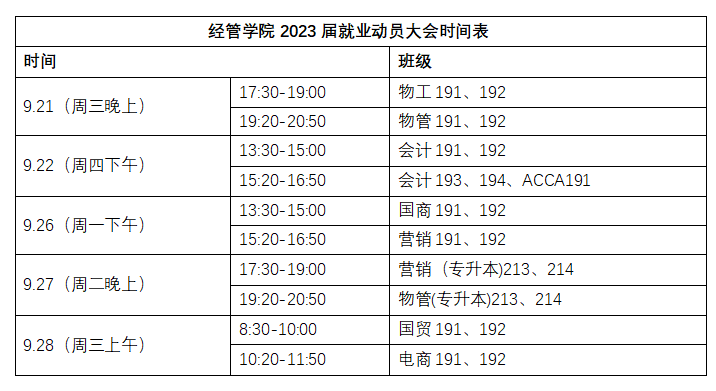本次动员会共10场,按专业分批进行,具体时间安排如下表。